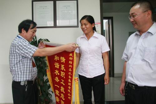 這些愛心捐助使莫煜君深深感受到水務大家庭的溫暖和關懷。為表示集團工會對她的幫助和關愛,送上大紅錦旗,面謝工會雪中送炭之情。