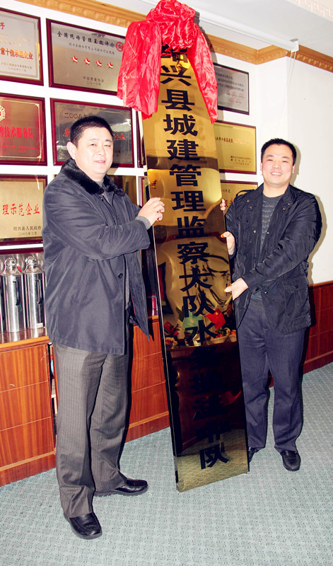 12月26日,紹興縣城建管理監(jiān)察大隊水務執(zhí)法中隊成立授牌儀式在排水公司舉行。縣城管辦副主任許立人、集團公司副總經(jīng)理馮梁峰等領導參加儀式。