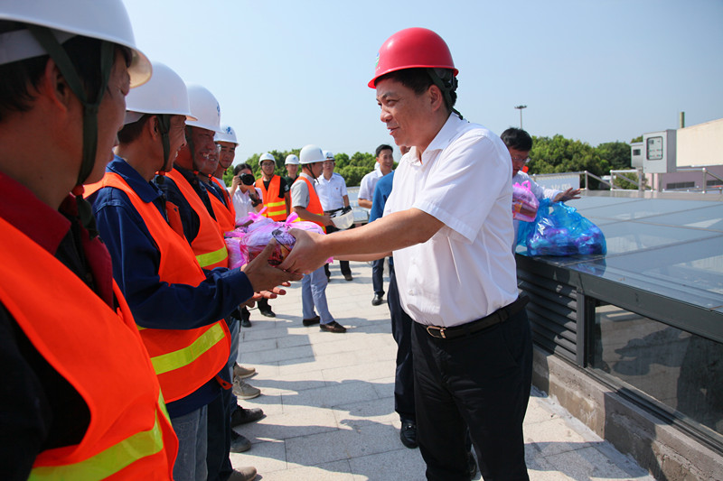 圖為集團黨委書記、董事長周儉慰問紹興水處理公司脫氮工程施工人員