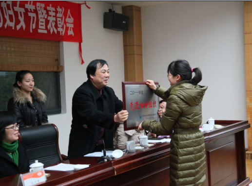 圖為集團高副書記為獲得2011年度婦聯先進集體頒獎