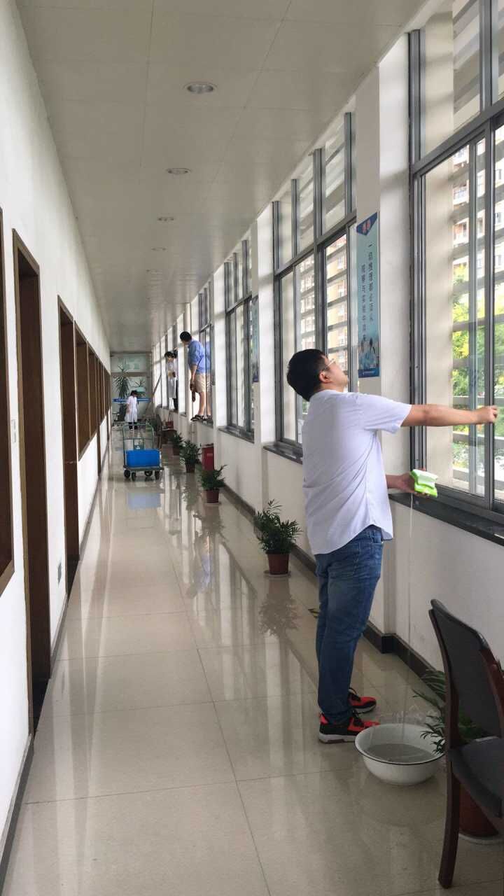 此次活動(dòng)主要對(duì)水質(zhì)大樓外墻窗戶進(jìn)行清洗。清洗過程中,大家表現(xiàn)出不怕臟、不怕累的精神,即便最后下起了雨,依然冒雨繼續(xù)清洗工作。